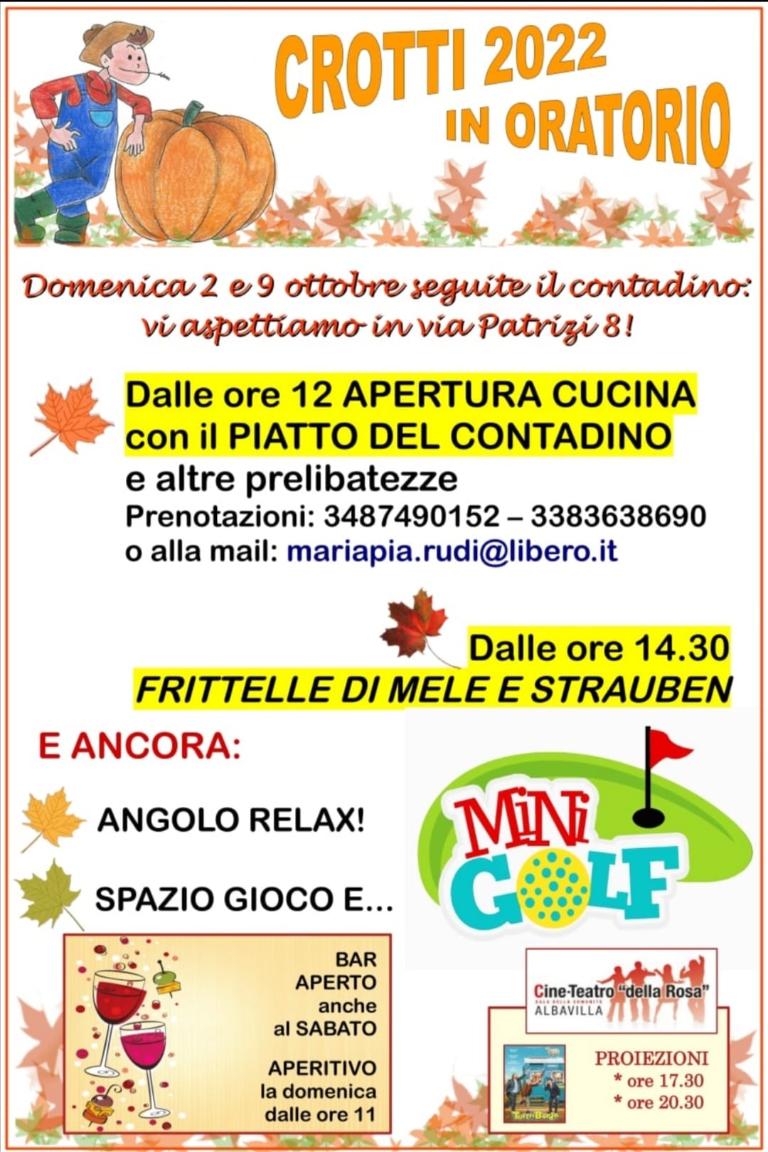 Crotti in Oratorio 2022 L'oratorio ci sarà alla Festa dei Crotti? Certo che si! Ecco tutte le info!!! Consigliata la prenotazione per il pranzo!
