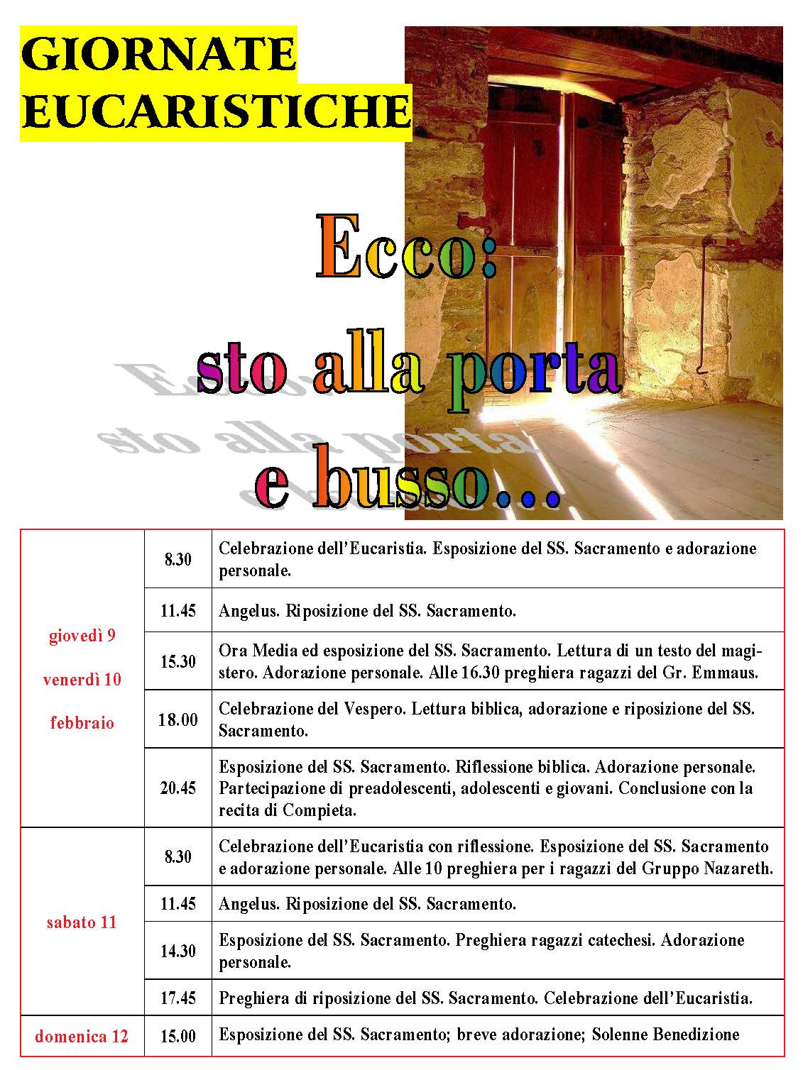 Le Benedizioni avranno luogo nei giorni sotto indicati a partire dalle ore 17.30