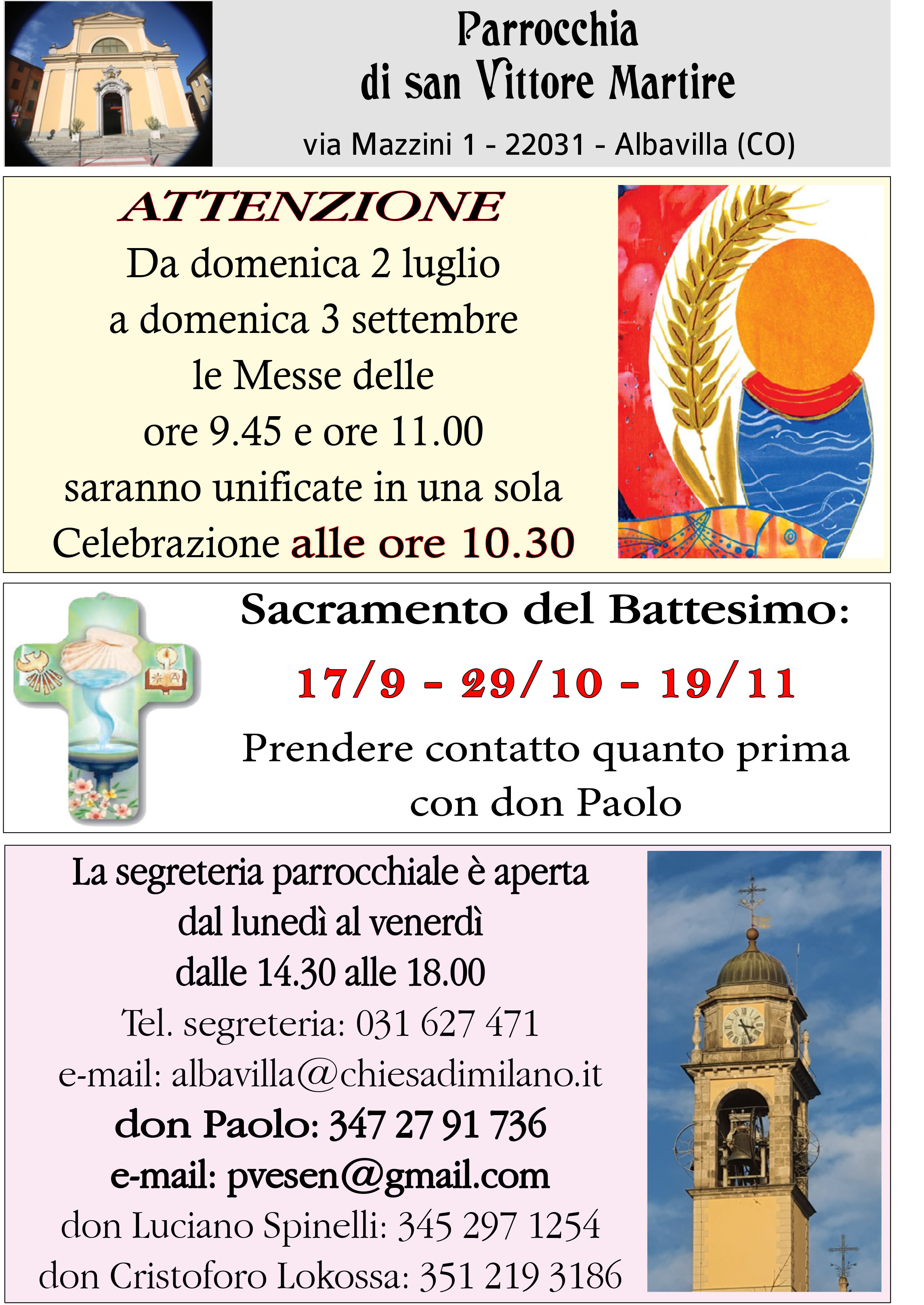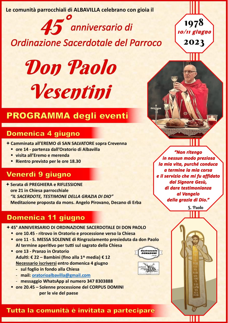 Carissimi, rendo noto che lunedì 28 ottobre, alle ore 20:45, ad Albavilla, in oratorio, si terrà il primo Consiglio Pastorale unitario.